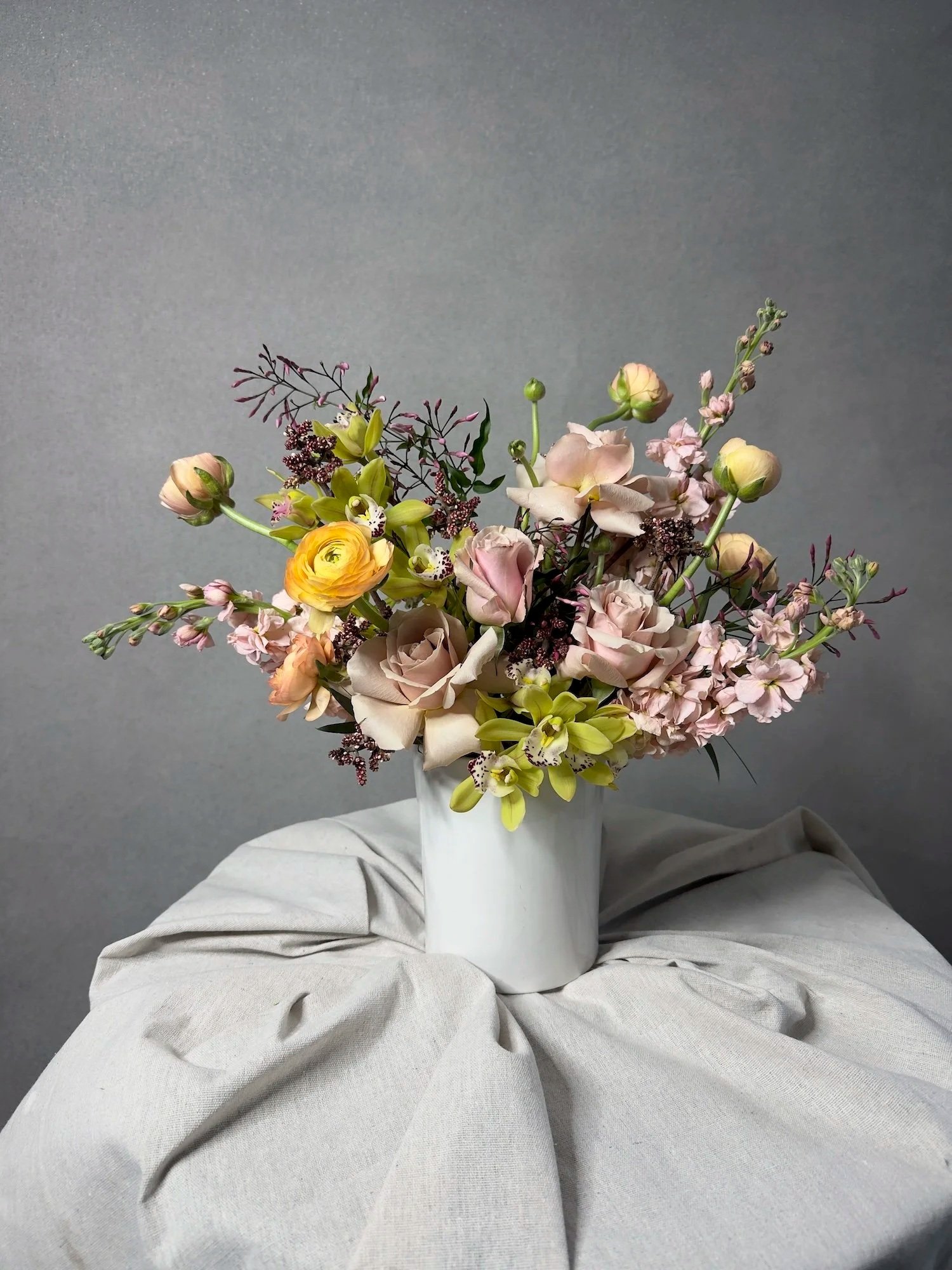 In addition to our hands-on floral workshops, we offer custom fresh arrangements and elevated faux floral rentals designed to transform your space and bring your vision to life. From interactive bouquet bars to statement installations and curated centerpiece collections, every detail is thoughtfully crafted to enhance your gathering.