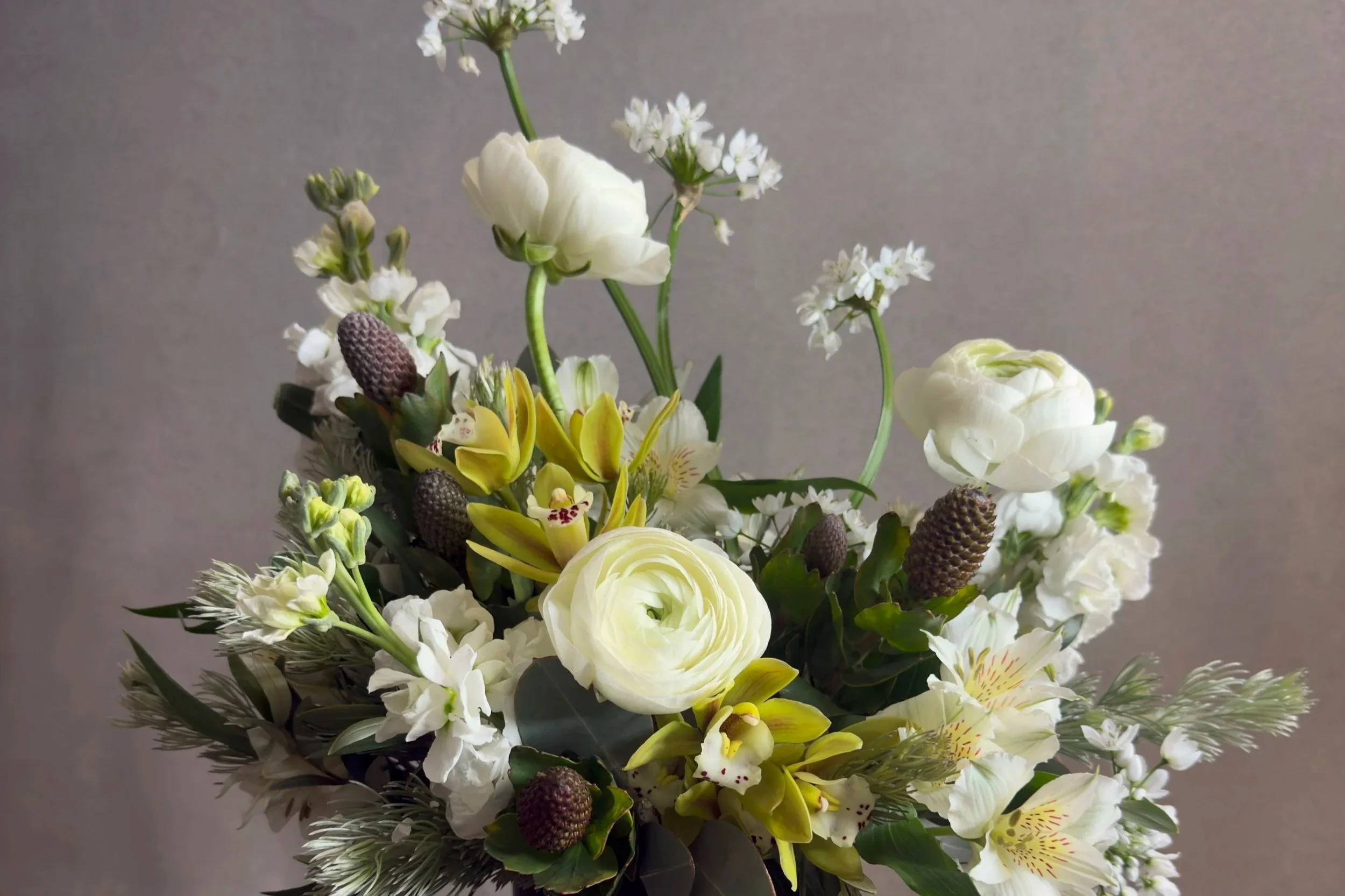 Expect a relaxed, hands-on floral experience. We guide guests step by step through the design process while keeping the atmosphere elevated, welcoming, and collaborative. Each guest leaves with a completed arrangement and practical floral techniques.